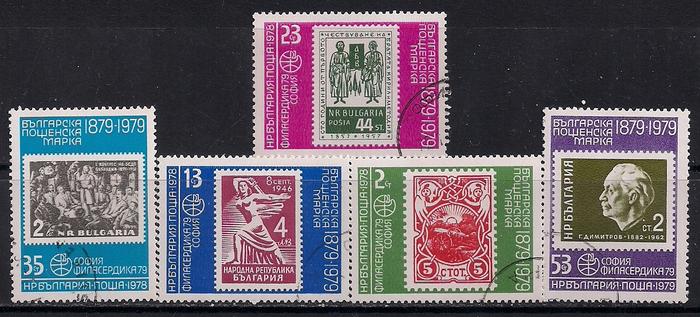 Болгария 1978 год. 100 лет болгарской почтовой марке. Филвыставка в Софии. 5 гашеных марок