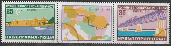 Болгария 1978 год. Дунайское судоходство. 2 гашёные марки с купоном