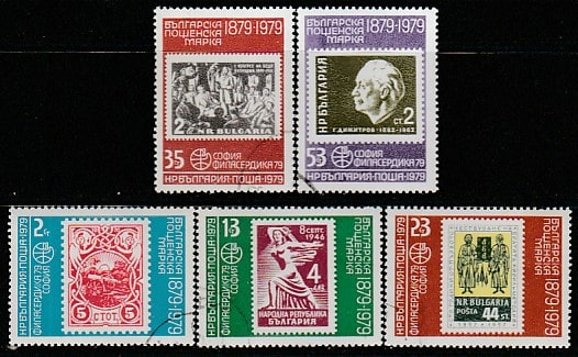 Болгария 1979 год. Филвыставка в Софии. 100 лет болгарской почтовой марке. 5 гашеных марок