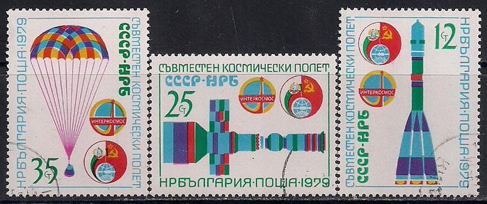 Болгария 1979 год. Совместный космический полет СССР и Болгарии. 3 гашеные марки
