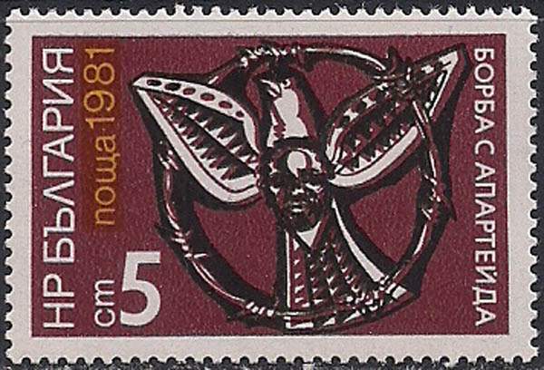 Болгария 1981 год. Борьба с апартеидом. Символический рисунок.1 марка
