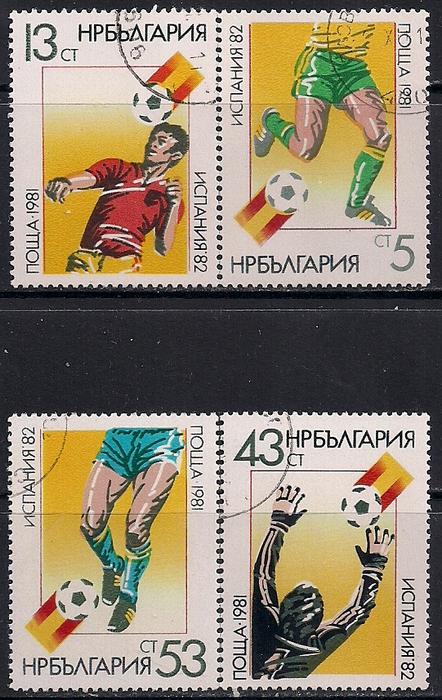 Болгария 1981 год. Чемпионат мира по футболу в Испании. 4 гашеные марки
