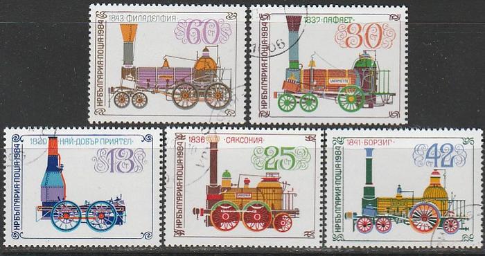 Болгария 1984 год. Исторические паровозы, 5 гашёных марок