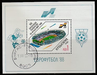 Болгария 1988 год. Чемпионат Европы по футболу в ФРГ, блок (гашёный)