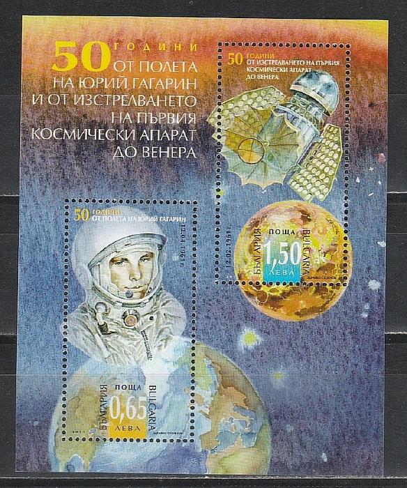 Болгария 2011 г, 50 лет Полета Гагарина, блок. (