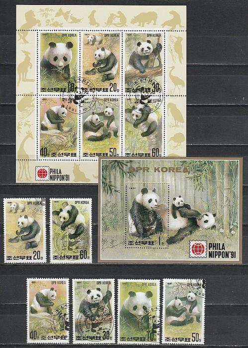 Большая Панда, СПЕЦгашение, КНДР 1991 г, 6 марок + малый лист + блок