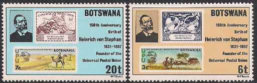 Ботсвана 1981 год. 150 лет со дня рождения немецкого аббата Генриха фон Стефана. 2 марки