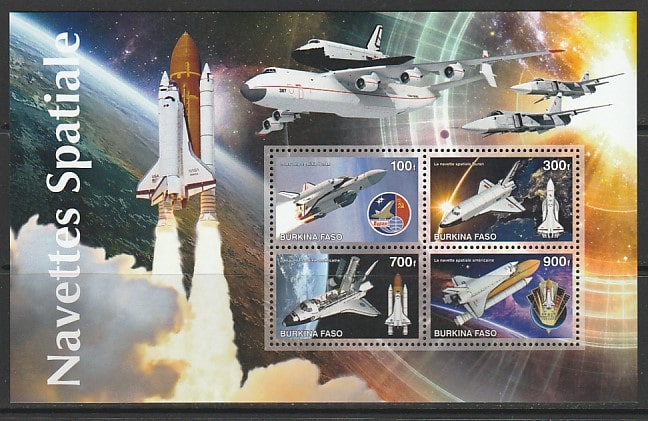 Буркина Фасо 2017 год. Космические челноки СССР и США, малый лист.