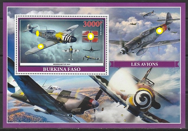 Буркина Фасо 2019 год. Истребители II Мировой войны, блок.
