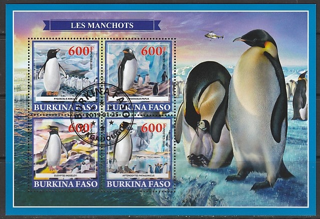 Буркина Фасо 2019 год. Пингвины, гашёный малый лист Сувенирный выпуск.