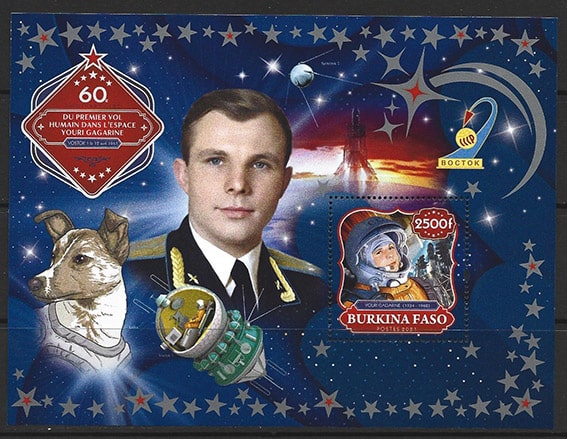 Буркина Фасо 2021 год. 60 лет первого полета человека в космос. Гагарин, блок