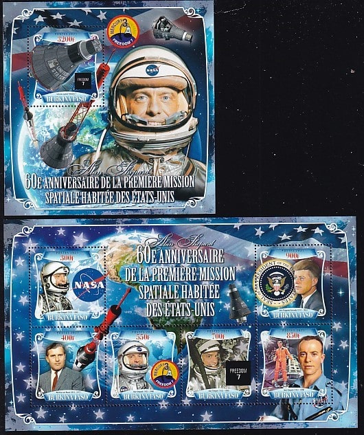 Буркина-Фасо 2021 год. 60-летие первой пилотируемой космической миссии США, блок + малый лист