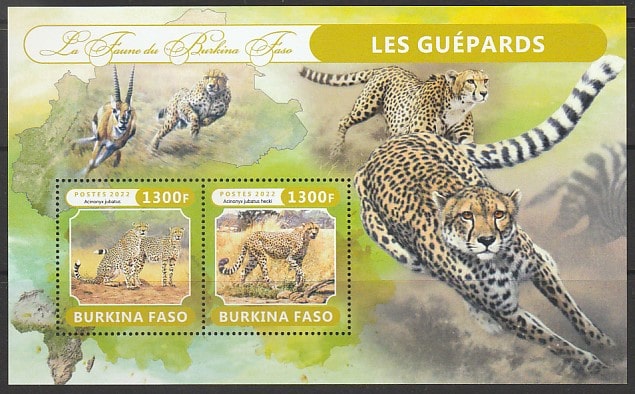 Буркина Фасо 2022 год. Гепарды, блок. Сувенирный выпуск.
