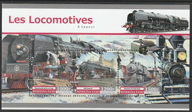 Буркина Фасо 2023 год. Паровозы, малый лист.
