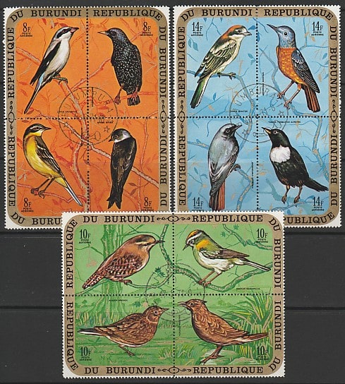 Бурунди 1970 год. Птицы (I), 3 гашёных квартблока (только "авиа")