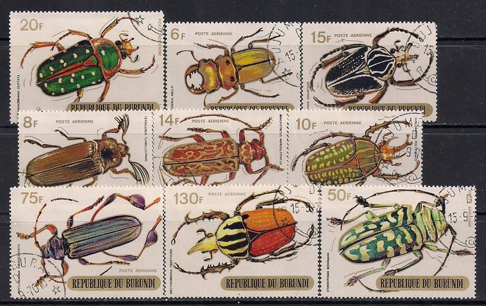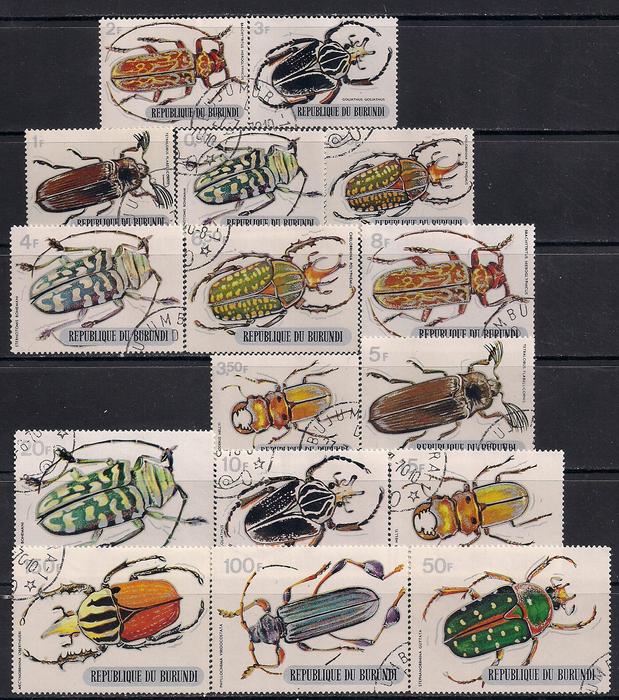 Бурунди 1970 год. Жуки. 25 гашеных марок. (16м и 9 авиа