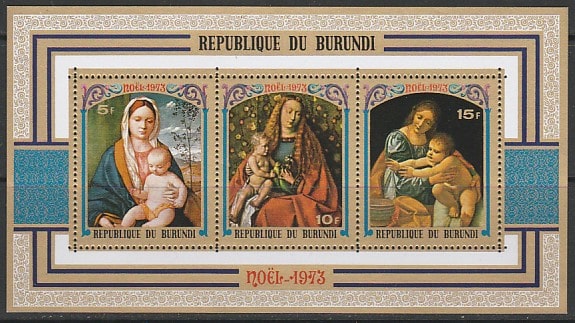 Бурунди 1973 год. Рождество. Религиозная живопись, блок (I) (3)