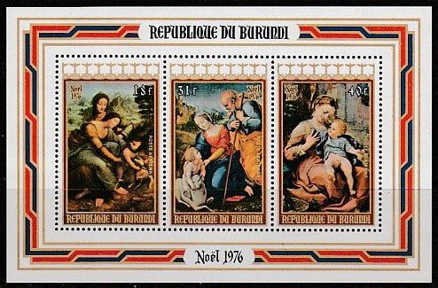 Бурунди 1976 год. Рождество. Религиозная живопись, блок.