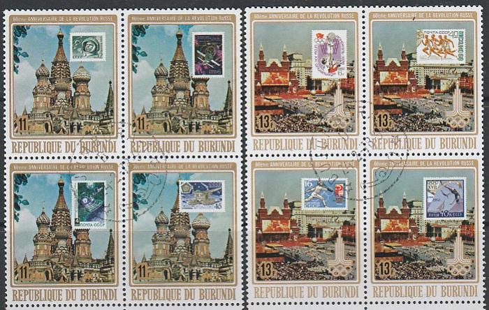 Бурунди 1977 год. 60 лет Октябрьской революции, 16 гашёных марок (4 квартблока)