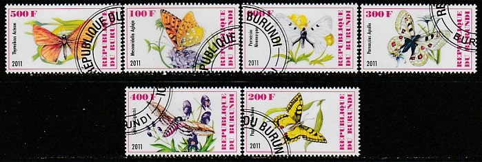 Бурунди 2011 год. Бабочки и цветы, 6 марок (гашёные)