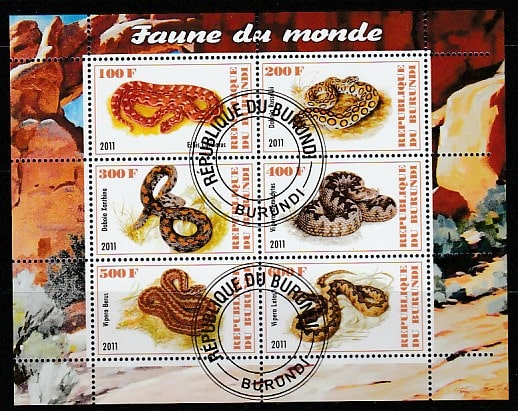 Бурунди 2011 год. Змеи, малый лист (гашёный)