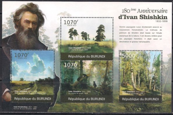 Бурунди 2012 год. Живопись И. Шишкина. Малый лист. зубцов 10м