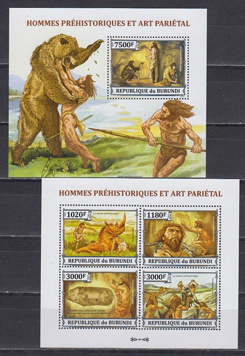 Бурунди 2013 год. Древние люди. Доисторическое искусство, блок и малый лист