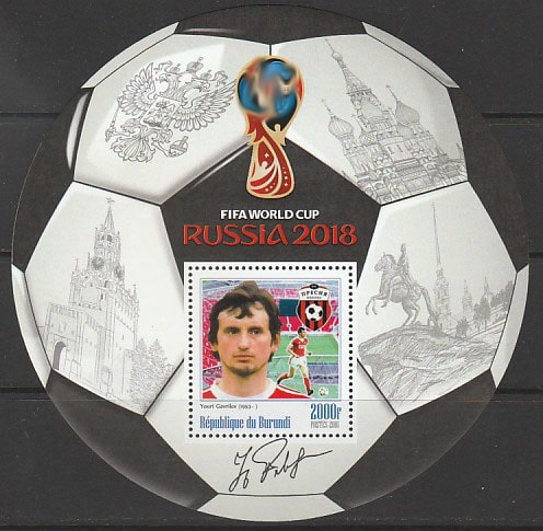 Бурунди 2016 год. ЧМ по футболу в России. Юрий Гаврилов, блок. Сувенирный выпуск.