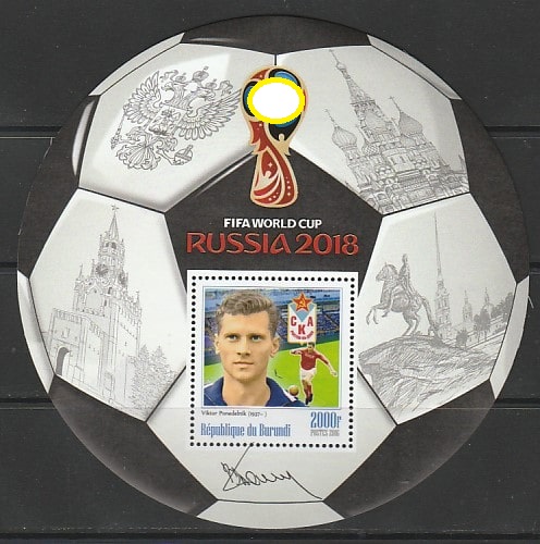 Бурунди 2016 год. Советский футболист, нападающий В.В. Понедельник, блок.