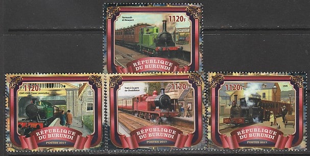 Бурунди 2017 год. Паровозы и вокзалы, 4 марки