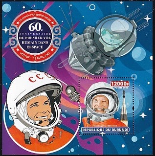 Бурунди 2021 год. 60-летие первого полета человека в космос, блок