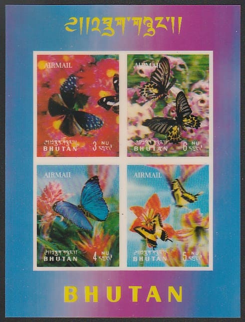 Бутан 1968 год. Бабочки со всего мира, блок с рифлёным пластиковым покрытием (II)