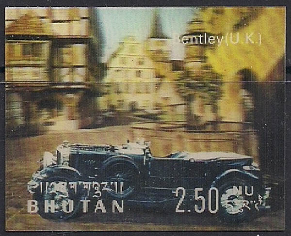 Бутан 1971 год. Старинные автомобили. Бентли. 1 марка из серии (ном 2.50)