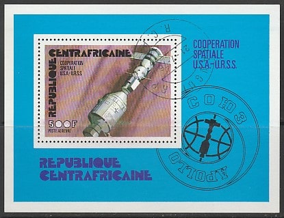 ЦАР 1976 год. Стыковка космических кораблей "Аполлон-18" и "Союз-19", блок (гашёный). (5,5)