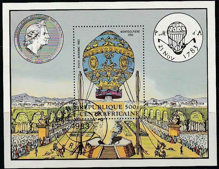 ЦАР 1983 год. 200 лет первому полёту Монгольфьера, гашёный блок