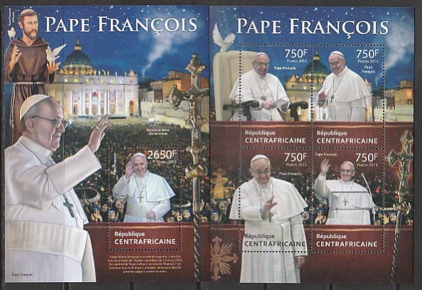 ЦАР 2013 год. Папа Римский Франциск, малый лист + блок.