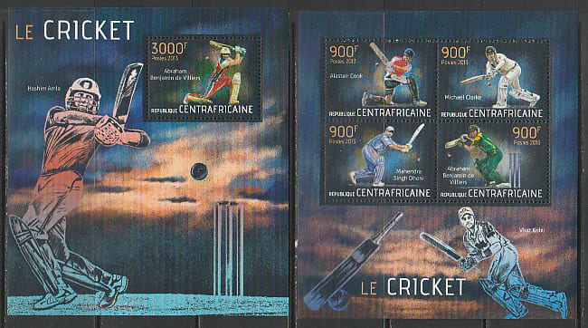ЦАР 2013 год. Спорт. Крикет. Спортсмены, малый лист + блок.