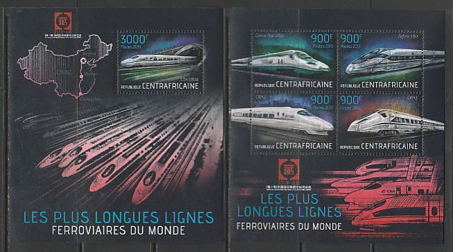 ЦАР 2013 год. Высокоскоростные поезда, малый лист + блок.