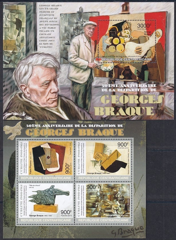ЦАР 2013 год. Жорж Брак, малый лист + блок