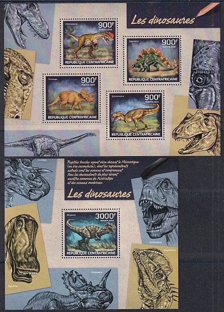 ЦАР 2014 год. Динозавры, малый лист + блок