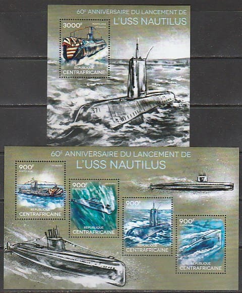 ЦАР 2014 год. Субмарины, малый лист + блок.