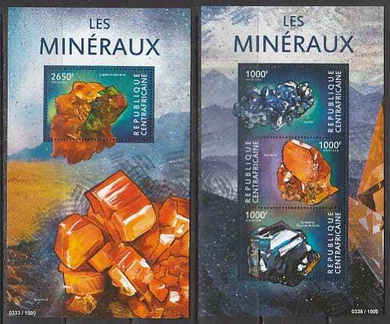 ЦАР 2015 год. Минералы, малый лист + блок.