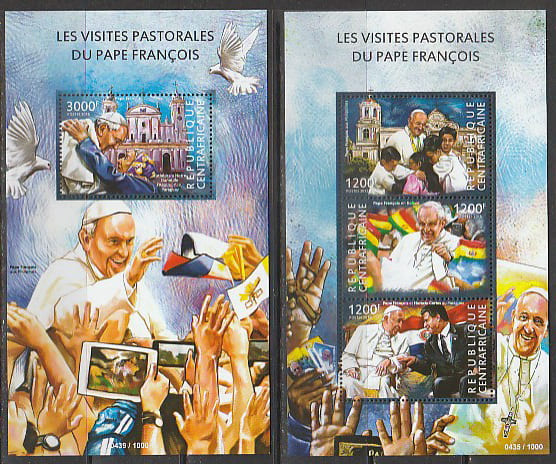 ЦАР 2015 год. Пасторские визиты Папы Римского Франциска, малый лист + блок.