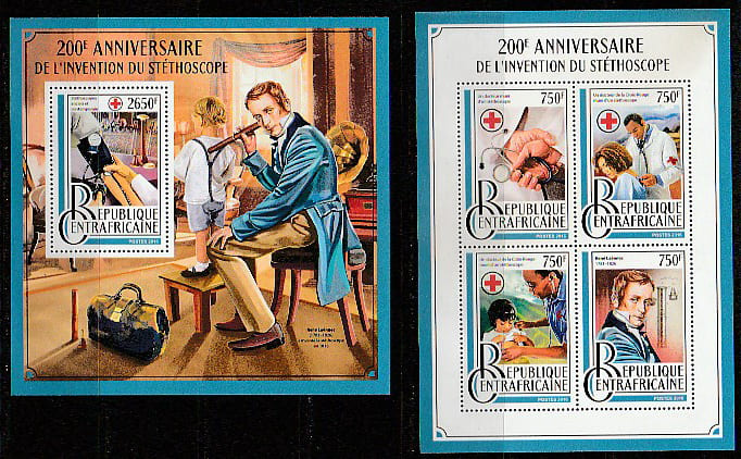 ЦАР 2016 год. 200 лет медицинскому стетоскопу, малый лист + блок.