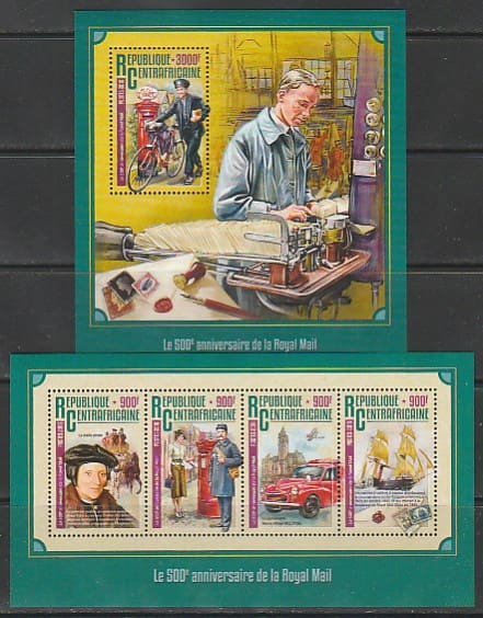ЦАР 2016 год. 500 лет Королевской почте Великобритании. малый лист + блок.