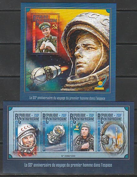 ЦАР 2016 год. 55 лет первому полёту человека в космос. Ю.А. Гагарин, малый лист + блок.