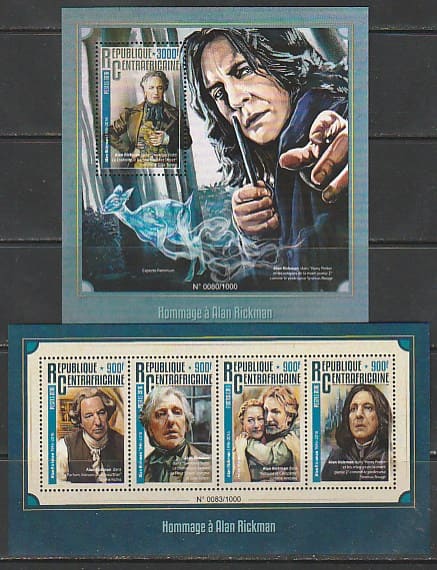 ЦАР 2016 год. Английский актёр Алан Рикман, малый лист + блок.