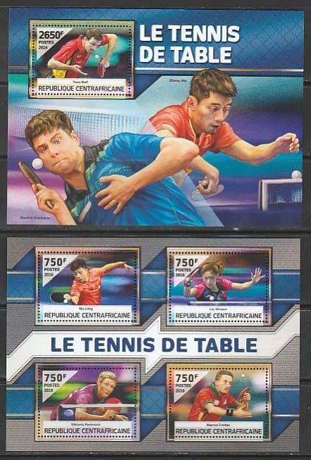 ЦАР 2016 год. Спорт. Настольный теннис. Спортсмены, малый лист + блок.