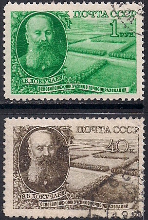 CCCР 1949 год. Естествоиспытатель В.В. Докучаев. 2 гашеные марки