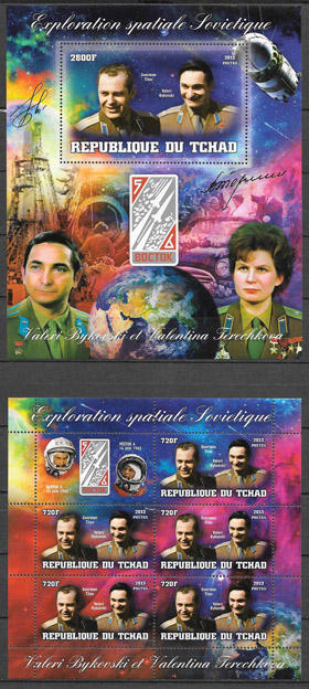 Чад 2013 г. Космос, Восток. Г. Титов и В. Быковский, блок и малый лист.
